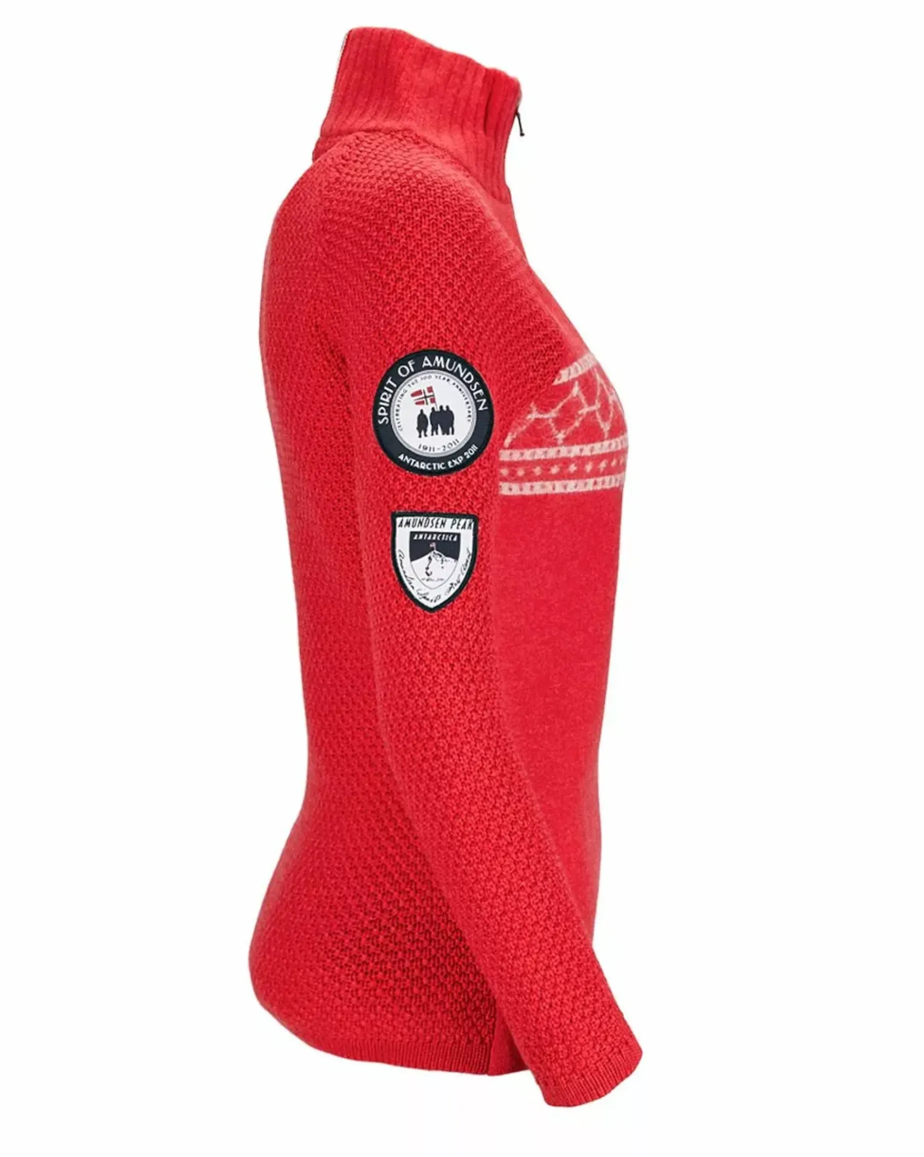 Made of 100% boiled merino wool, this sweater is strategically sewn to provide a dense warm knit on the front and a looser “moss stitch” on the arms and back for mobility. Of course, we proudly feature a traditional Nordic pattern across the chest.