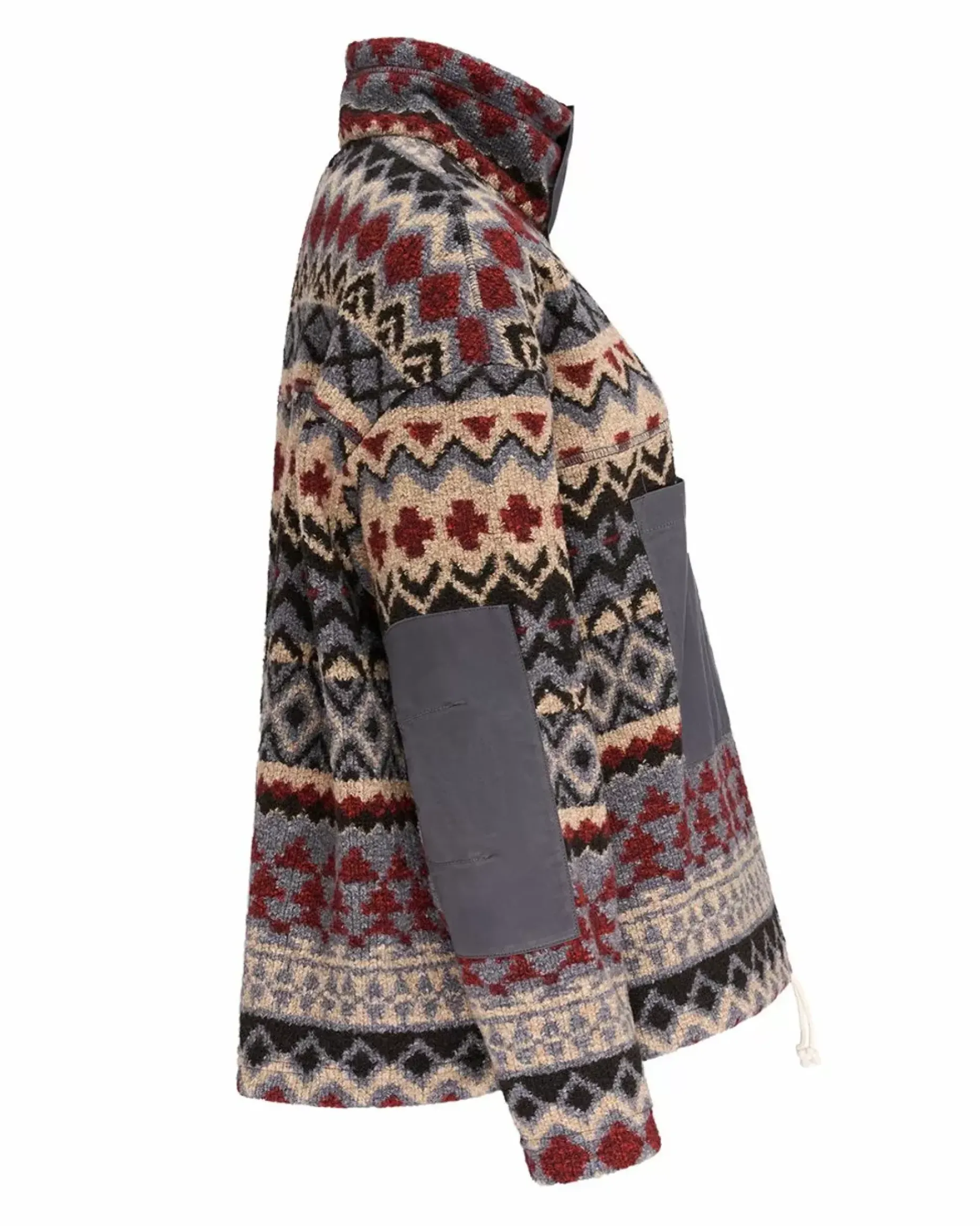Amidst the dappled light and tawny colors of autumn, the Italian wool-blend of this fleece serves as your ‘fall camouflage’.