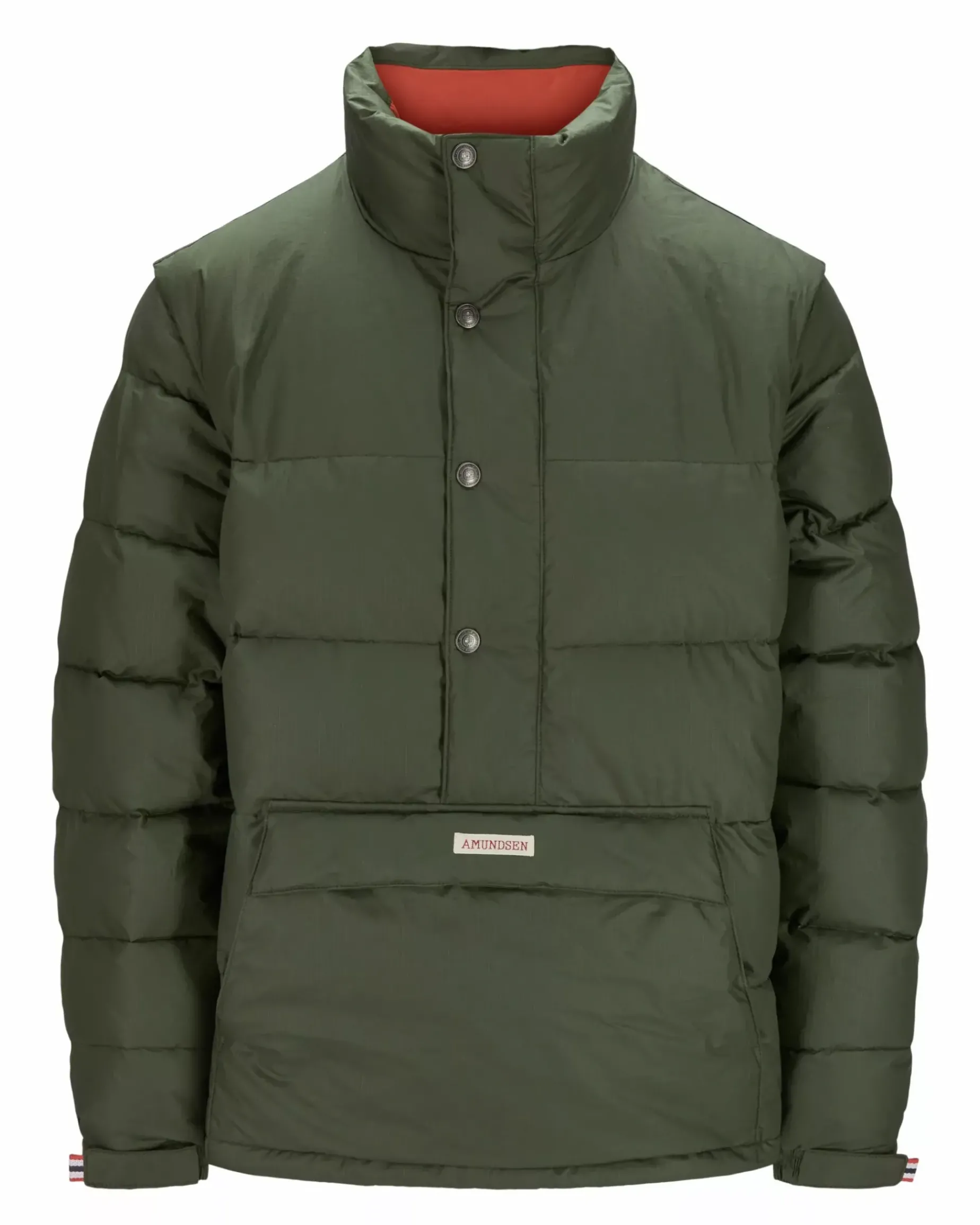 Waist-cut chunky recycled down anorak in organic cotton. Removable sleeves for the high pressure days on the piste.