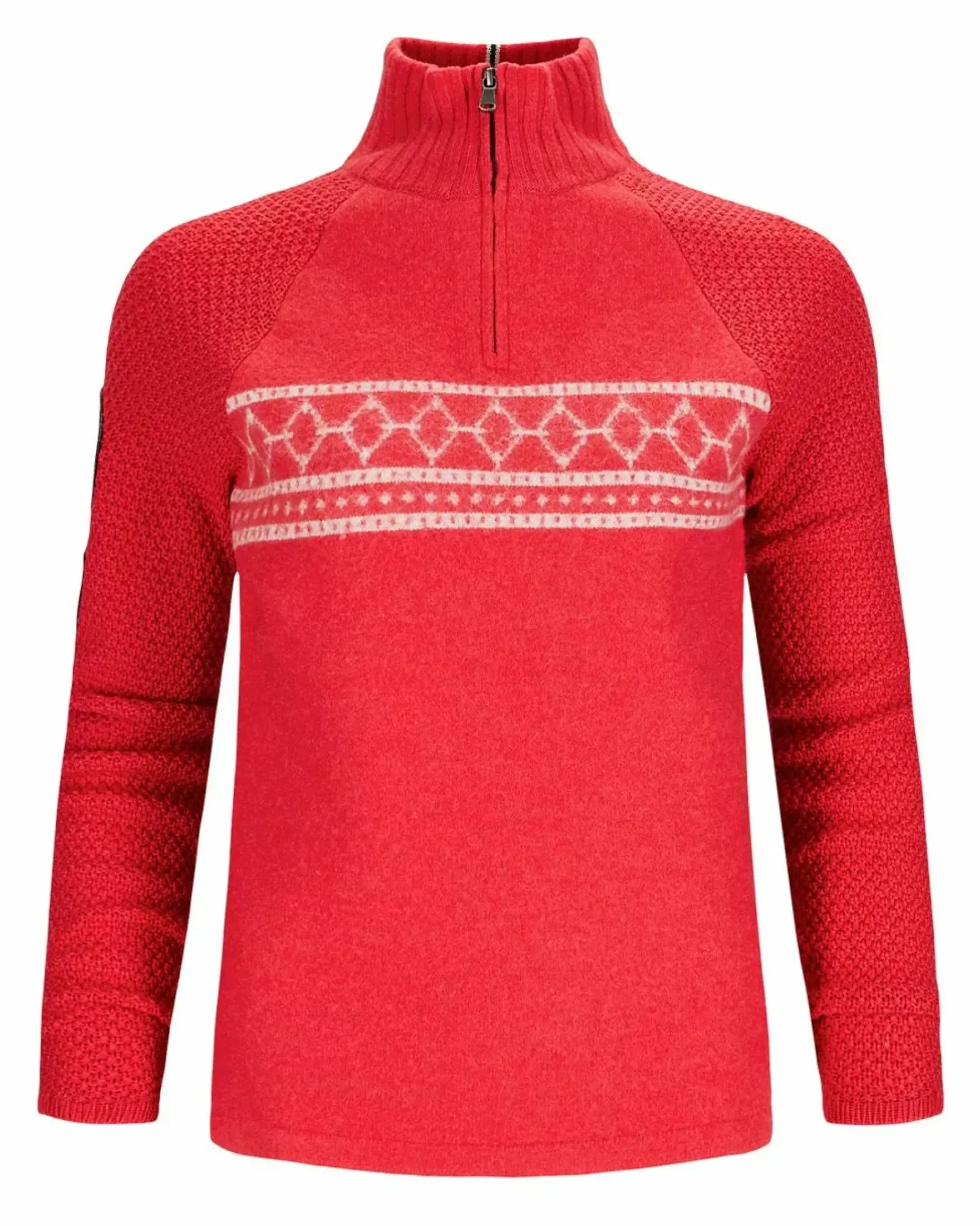 Made of 100% boiled merino wool, this sweater is strategically sewn to provide a dense warm knit on the front and a looser “moss stitch” on the arms and back for mobility. Of course, we proudly feature a traditional Nordic pattern across the chest.