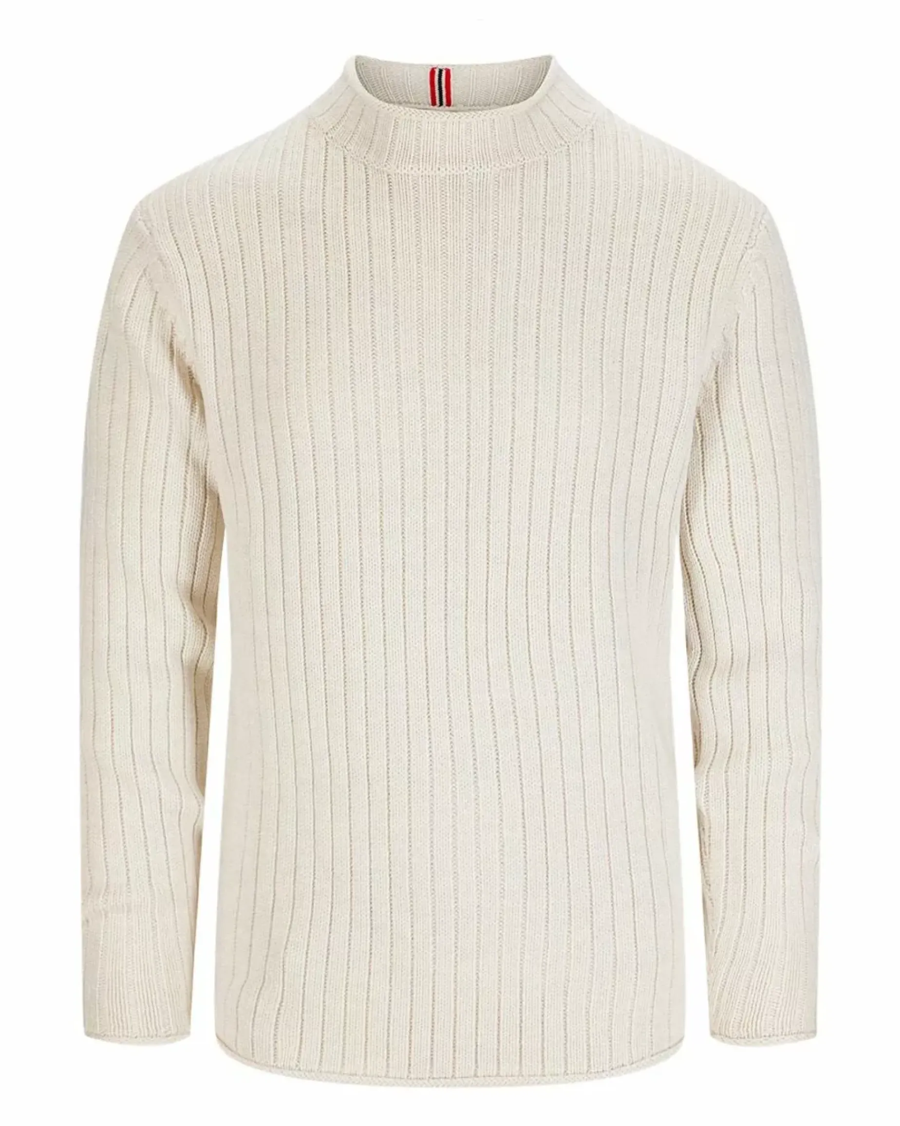 Loosely rib-knit roll neck merino wool sweater versatile across seaons and activities.
