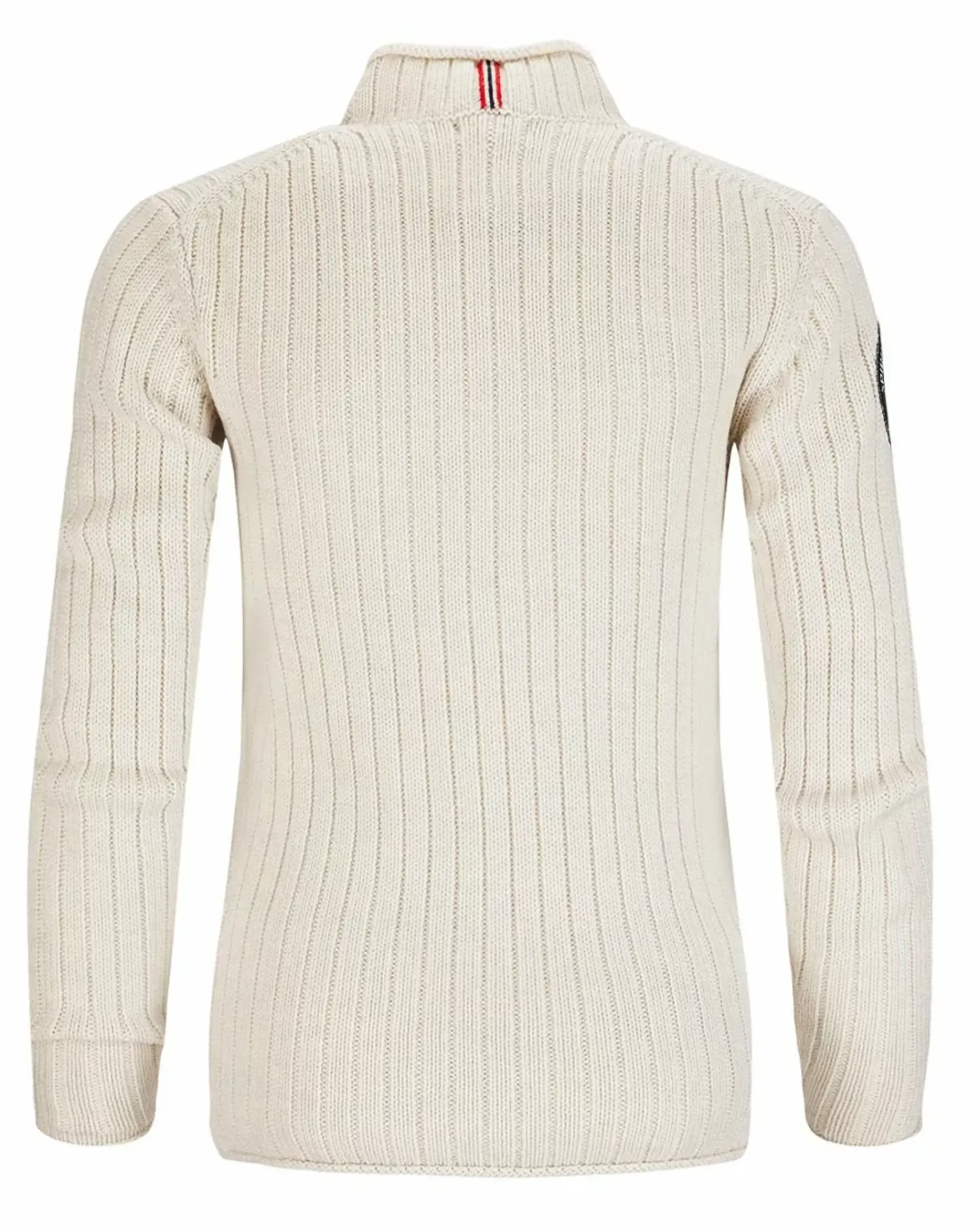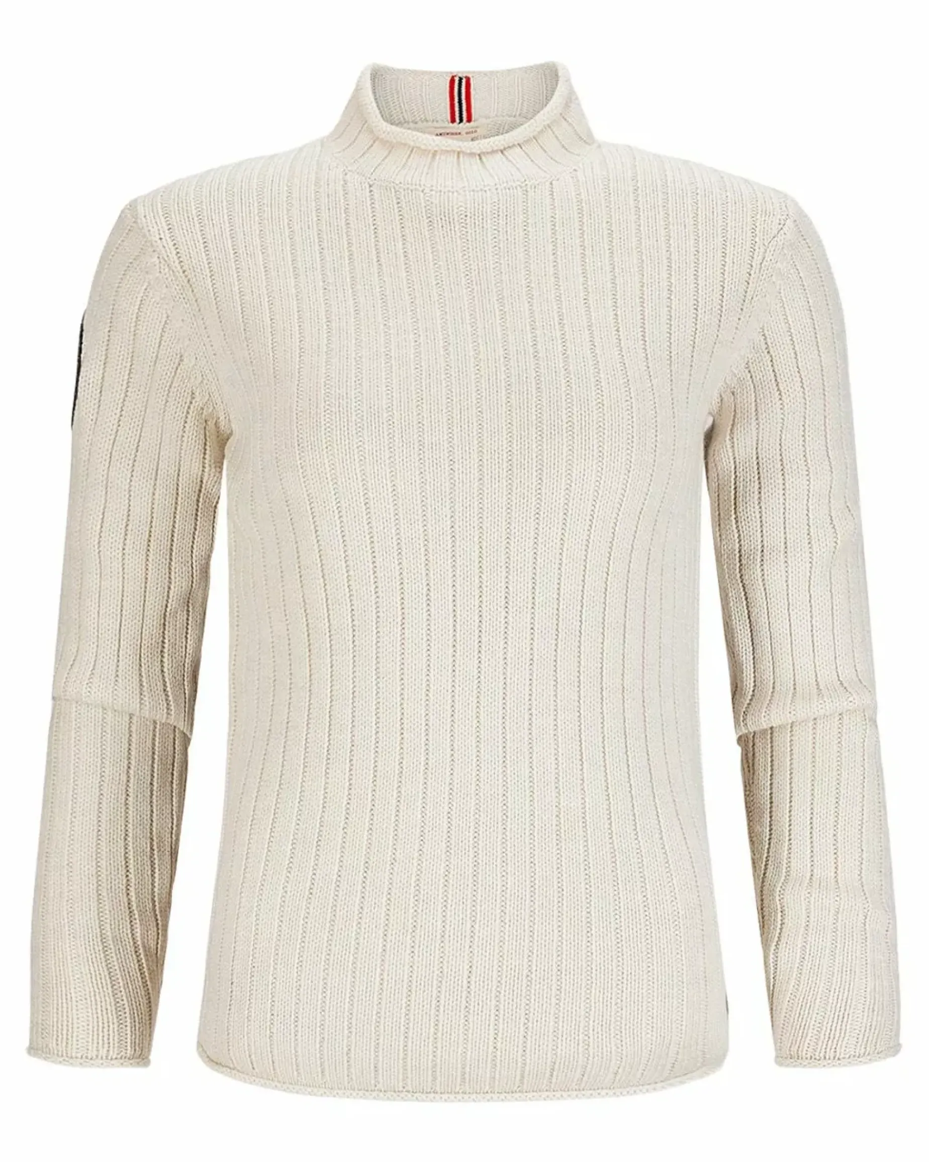 Loosely rib-knit roll neck merino wool sweater versatile across seaons and activities.